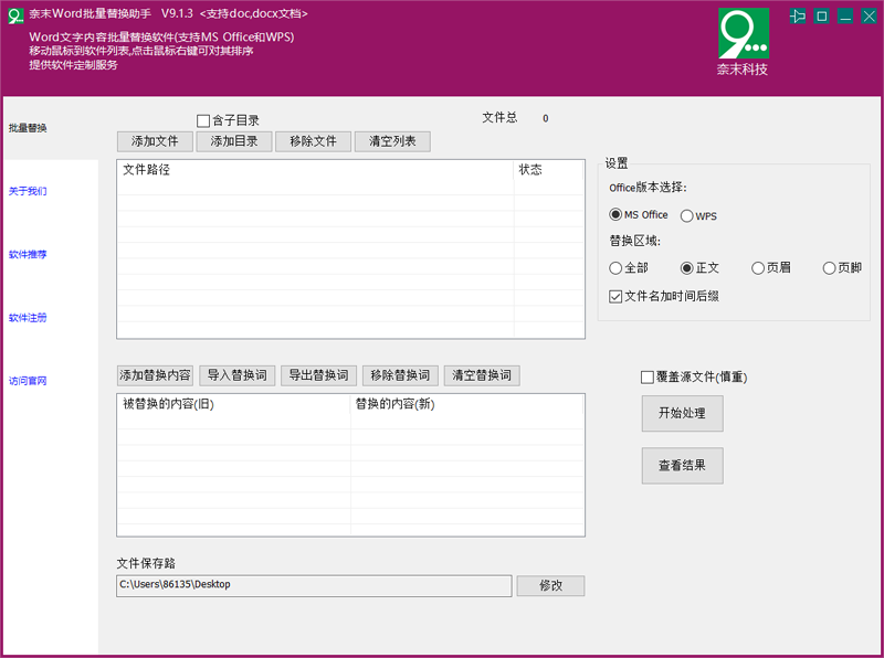 Word批量替换助手是奈末科技专为处理doc,docx文档批量替换而设计的软件,软件具有以下功能: